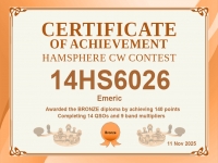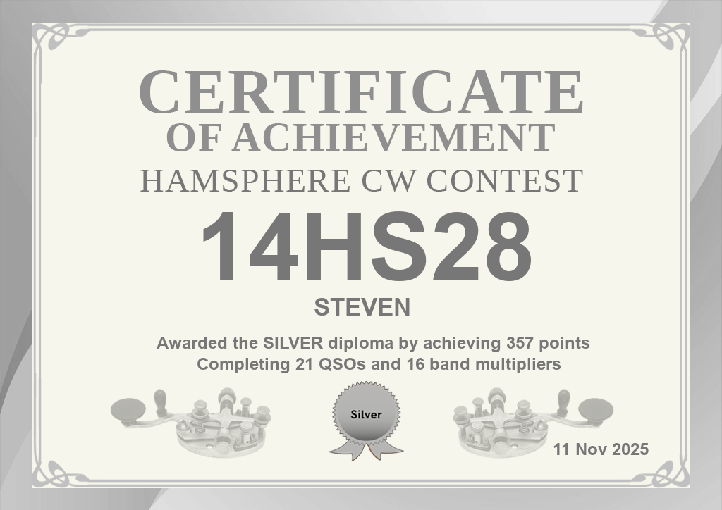 | HamSphere CW Contest 2025 | 2025-11-08 00:00:00 | 2025-11-09 00:00:00 | 2025-11-11 00:00:00 | VIEW | ||||