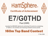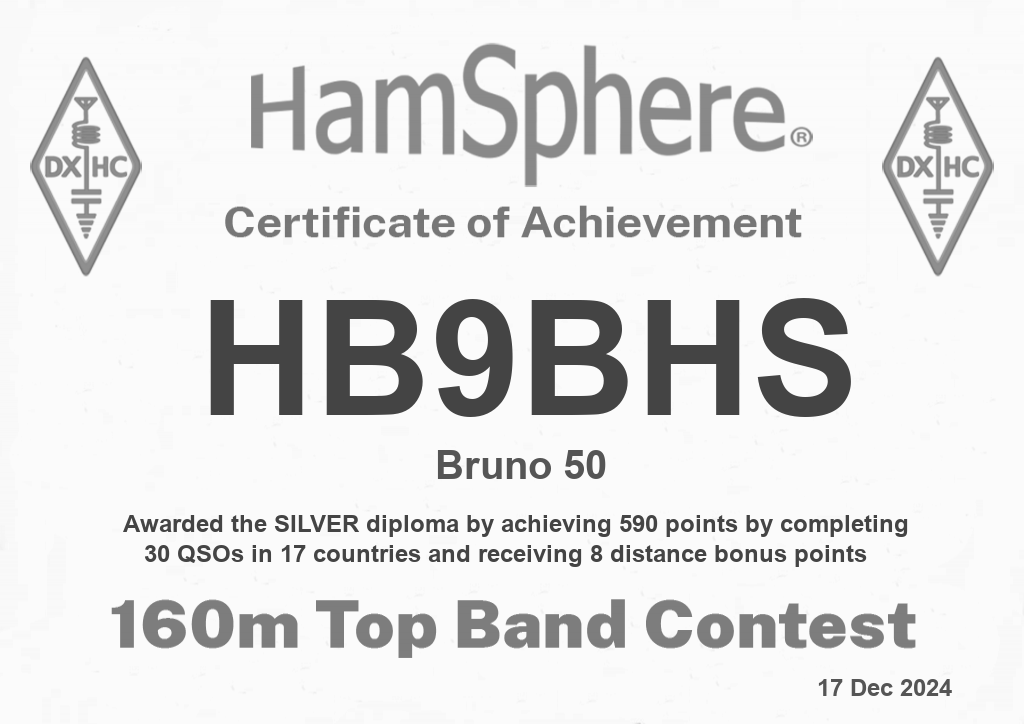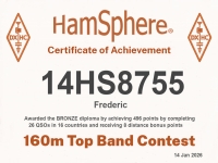 | HamSphere Top band contest 2024 | 2024-12-14 00:00:00 | 2024-12-15 00:00:00 | 2024-12-17 00:00:00 | VIEW | ||||
