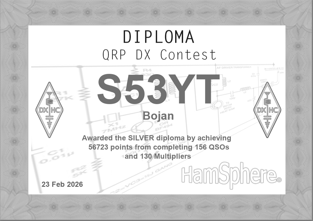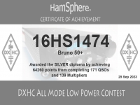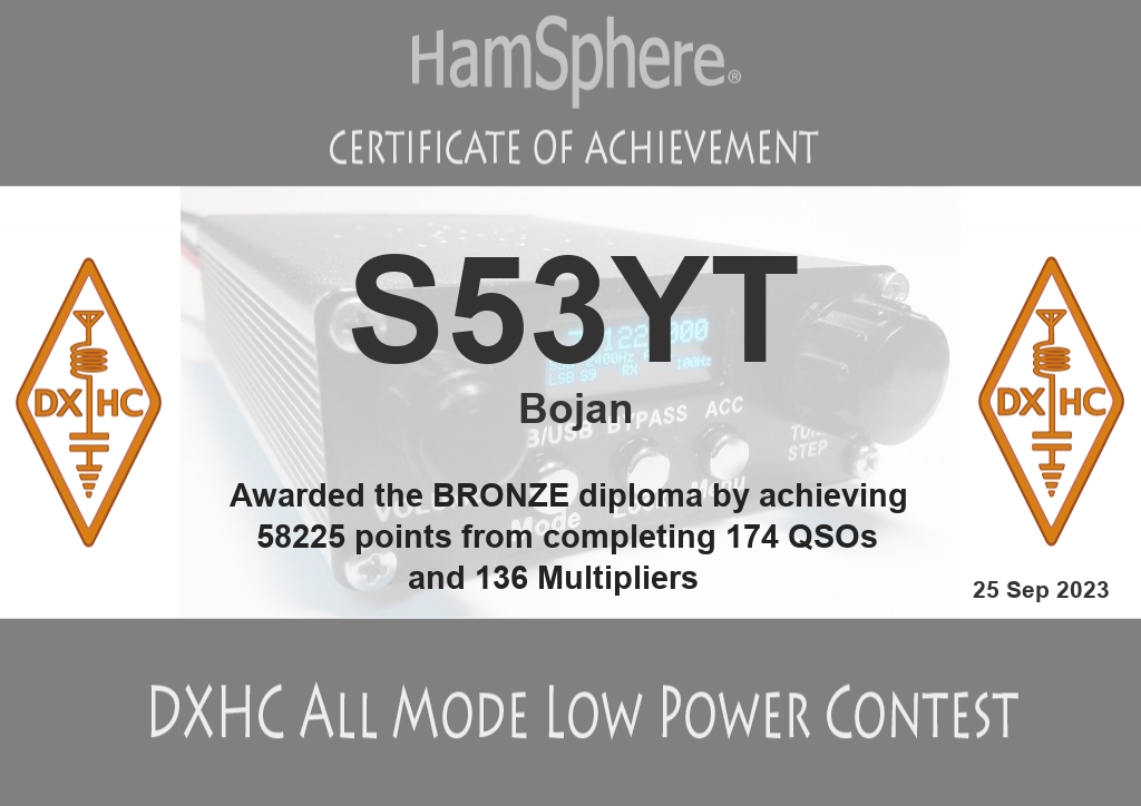 | HamSphere DXHC All Mode Low Power Contest 2023 | 2023-09-23 00:00:00 | 2023-09-24 00:00:00 | 2023-09-25 00:00:00 | VIEW | ||||