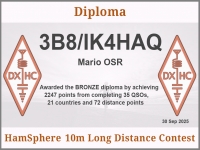 | HamSphere International DX SSB Contest 2025 Part 1 | 2025-09-12 22:00:00 | 2025-09-13 08:20:00 | 2025-09-16 22:00:00 | INFO | ||||