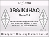 | HamSphere All Mode Low Power Contest on 10-160m using any mode and maximum 10 Watts for full points (please see QSO points below). You can enhance your final score by making band multipliers and/or contacting QRP stations. This contest is 24 hours long. |