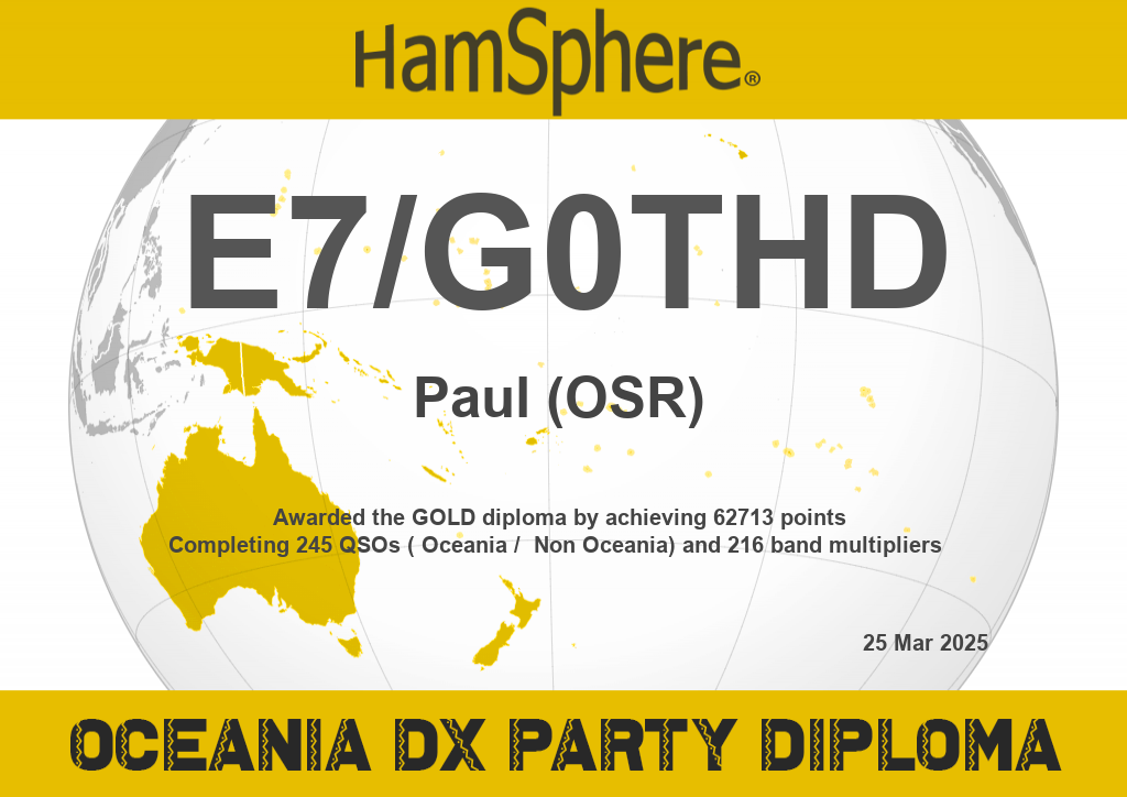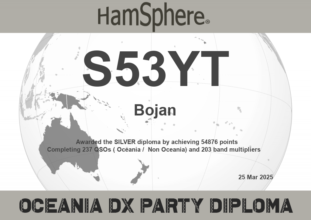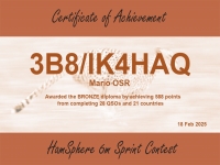 | HamSphere Oceania HF Party 2025 | 2025-03-22 00:00:00 | 2025-03-23 00:00:00 | 2025-03-25 00:00:00 | VIEW | ||||