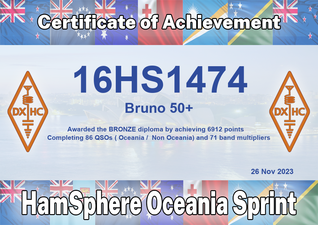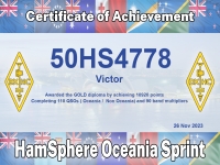 | HamSphere Oceania DX Sprint 2023 | 2023-11-25 06:00:00 | 2023-11-25 12:00:00 | 2023-11-26 12:00:00 | VIEW | ||||