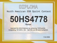 | HamSphere North American SSB Sprint Contest 2024 | 2024-09-28 16:00:00 | 2024-09-28 22:00:00 | 2024-10-01 00:00:00 | VIEW | ||||