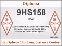 | HamSphere 10m long distance contest 2026 | 2026-03-21 10:00:00 | 2026-03-22 10:00:00 | 2026-03-24 00:00:00 | VIEW | ||||