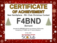 | New HamSphere 50 Plus Club 24 hour Christmas contest | 2023-12-23 00:00:00 | 2023-12-24 00:00:00 | 2023-12-25 00:00:00 | VIEW | ||||