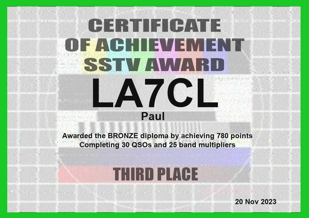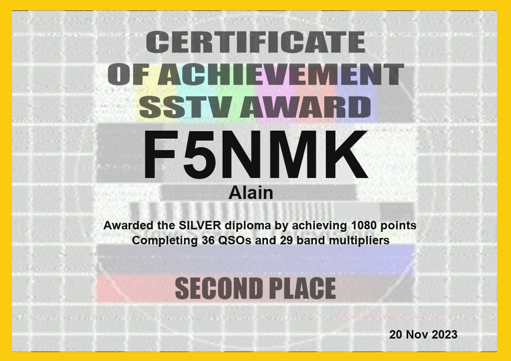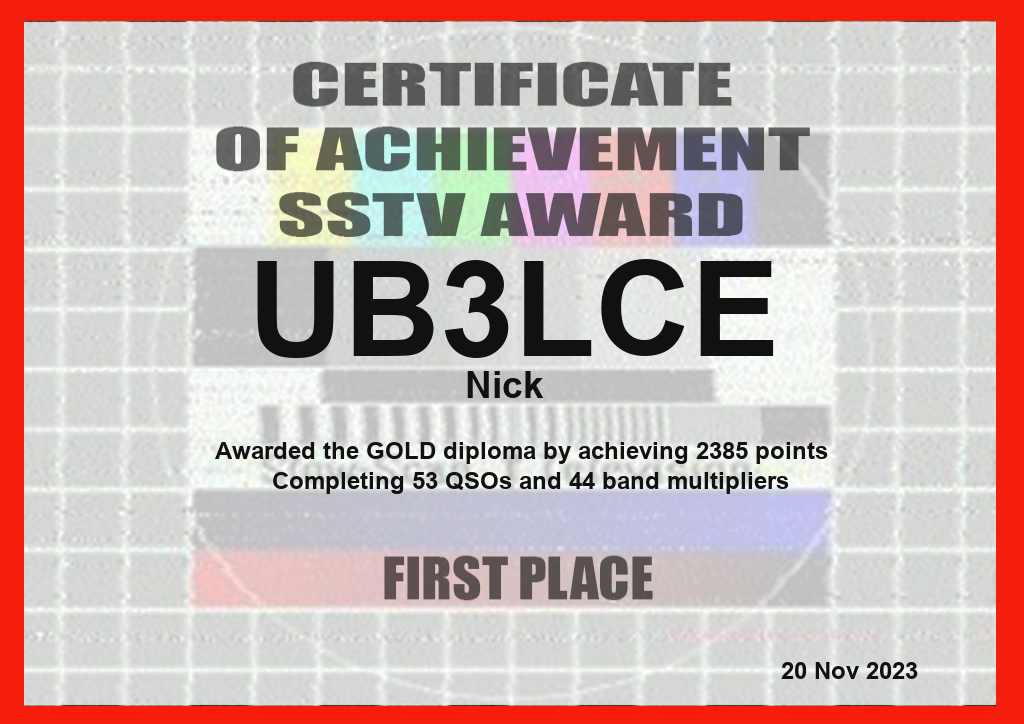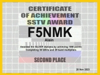 | HamSphere SSTV Contest 2023 | 2023-11-18 04:00:00 | 2023-11-19 04:00:00 | 2023-11-20 04:00:00 | VIEW | ||||