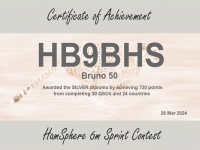 | HamSphere VHF/UHF Sprint Contest 2024 | 2024-01-13 11:00:00 | 2024-01-13 17:00:00 | 2024-01-15 00:00:00 | VIEW | ||||