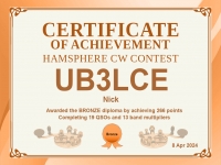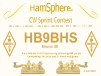 | HamSphere official CW Contest on 10-160m using 5 Watts maximum for 24 hours. You can enhance your final score by making band multipliers. |