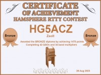 | HamSphere RTTY Contest 2023 | 2023-08-26 10:00:00 | 2023-08-27 10:00:00 | 2023-08-28 10:00:00 | VIEW | ||||