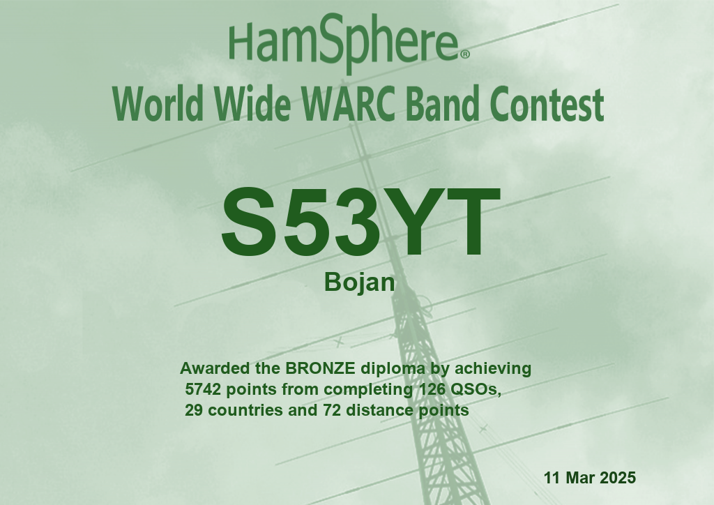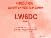 | HamSphere World Wide WARC Band Contest 2025 | 2025-03-08 06:00:00 | 2025-03-09 06:00:00 | 2025-03-11 06:00:00 | VIEW | ||||