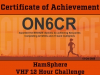 | HamSphere VHF 12 Hour Challenge is to works as many stations as you can on both 6 meters & 2 meter band.. |