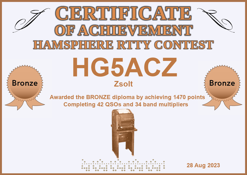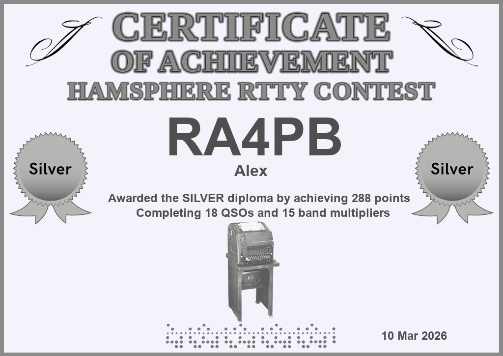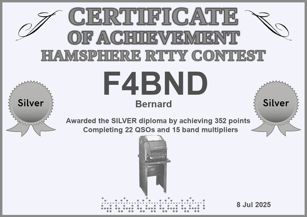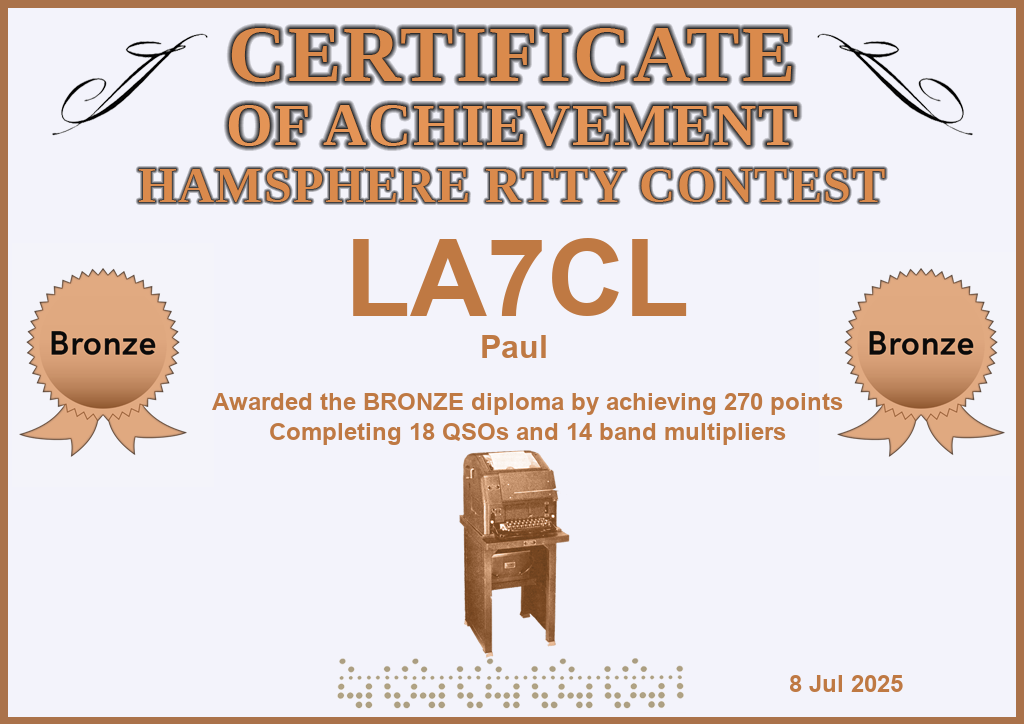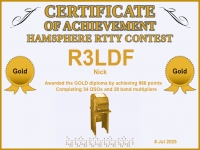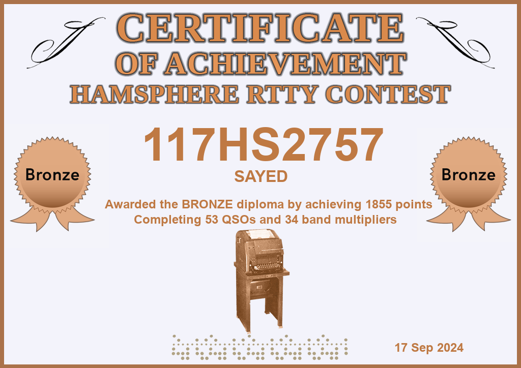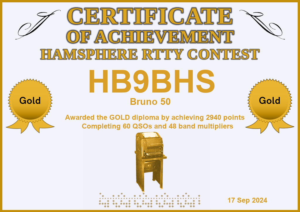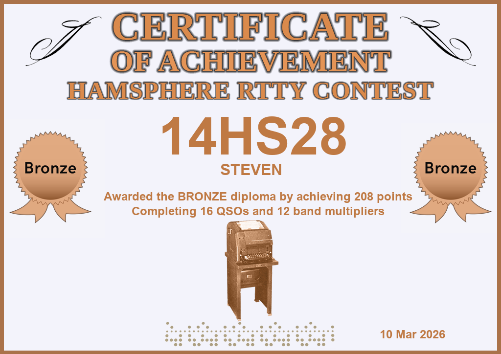 | HamSphere RTTY Contest. Work as many stations you can using RTTY mode under 24 hours. You can enhance your final score by making band multipliers. |