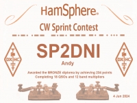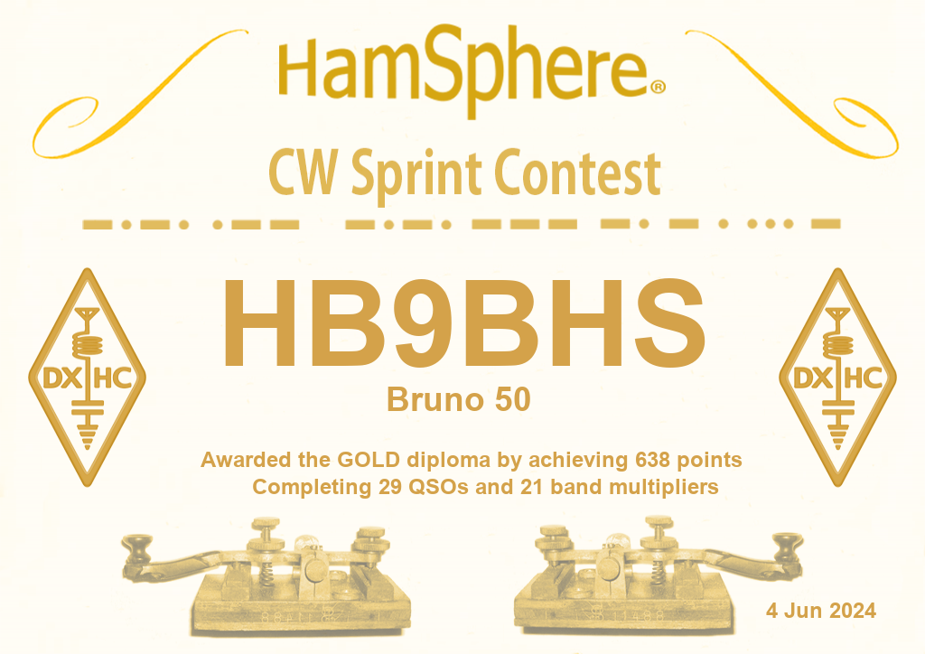 | HamSphere CW Sprint 2024 | 2024-06-02 18:00:00 | 2024-06-02 22:00:00 | 2024-06-04 00:00:00 | VIEW | ||||