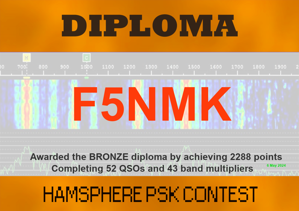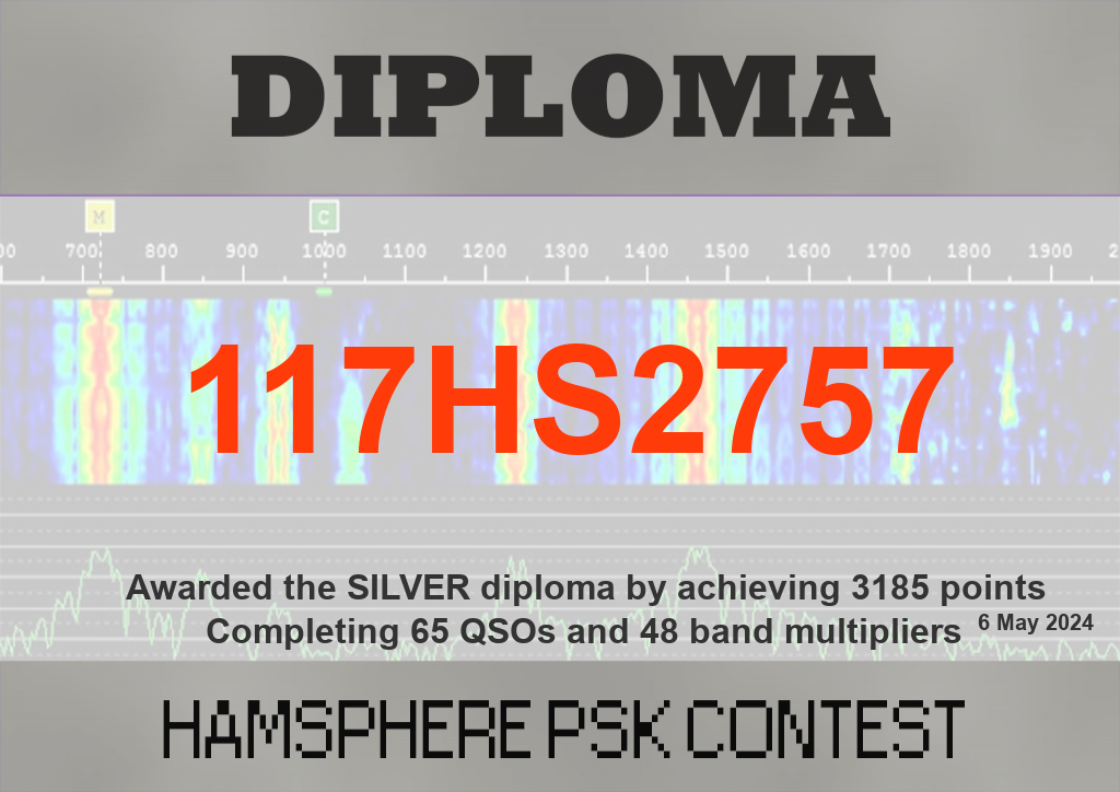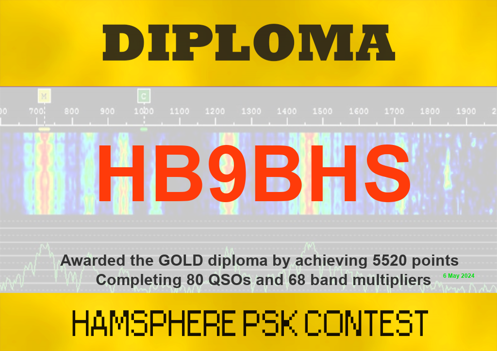 | HamSphere PSK Contest. Work as many stations you can using PSK mode under 24 hours. You can use band multipliers to enhance your score. |