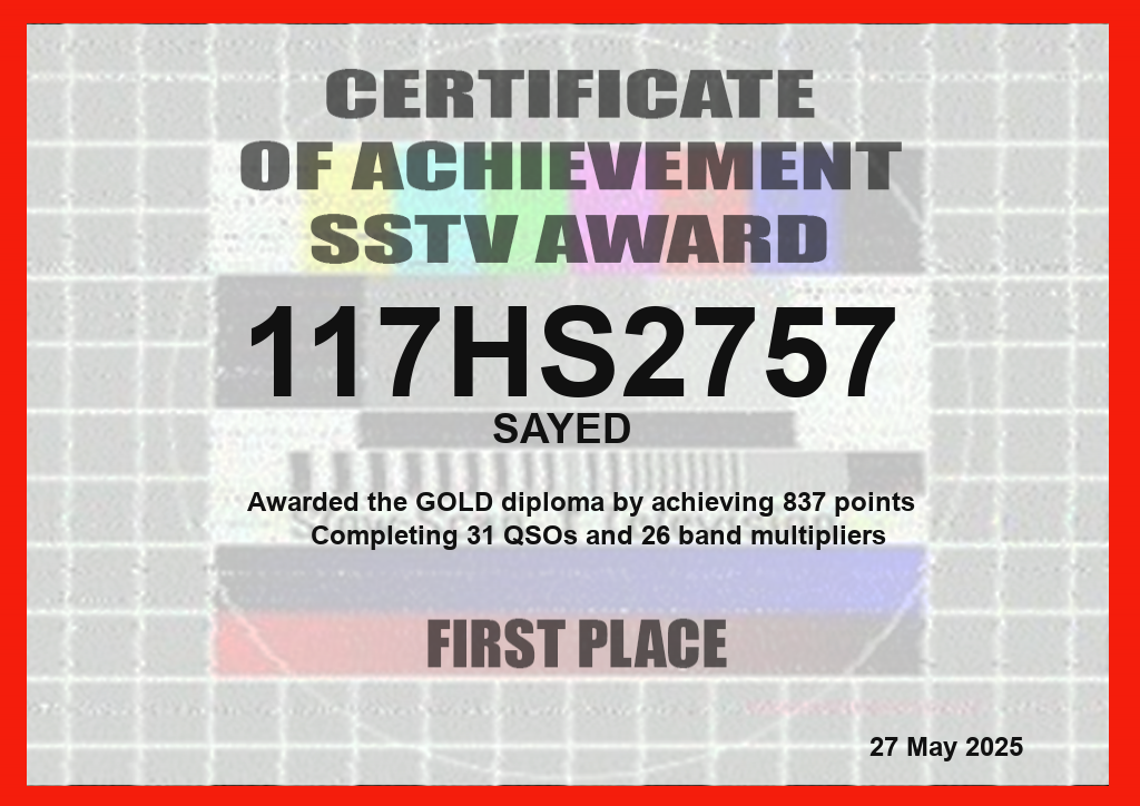 | HamSphere SSTV Contest. Work as many stations you can using SSTV mode under 24 hours. |