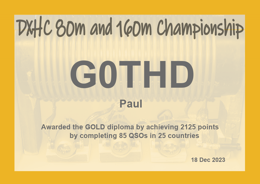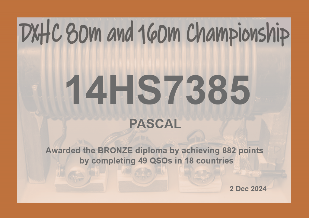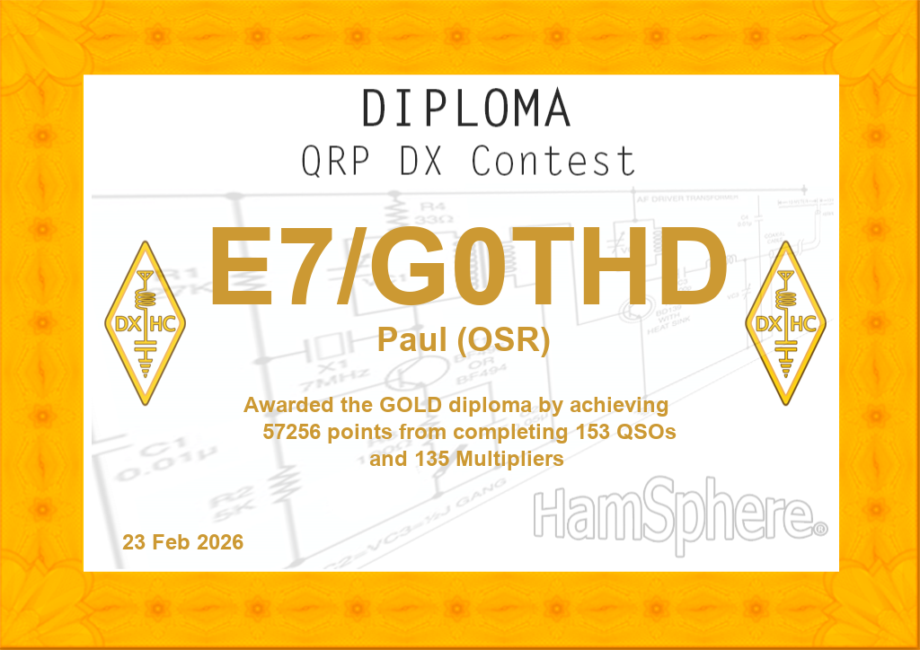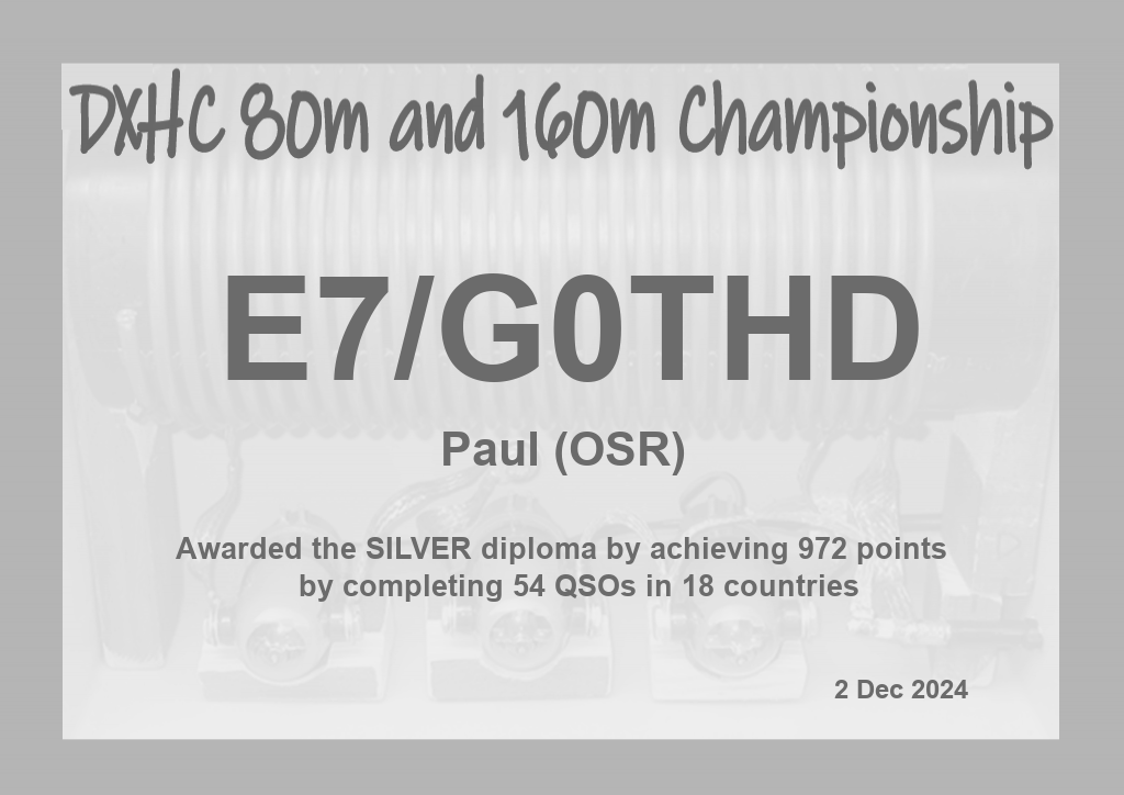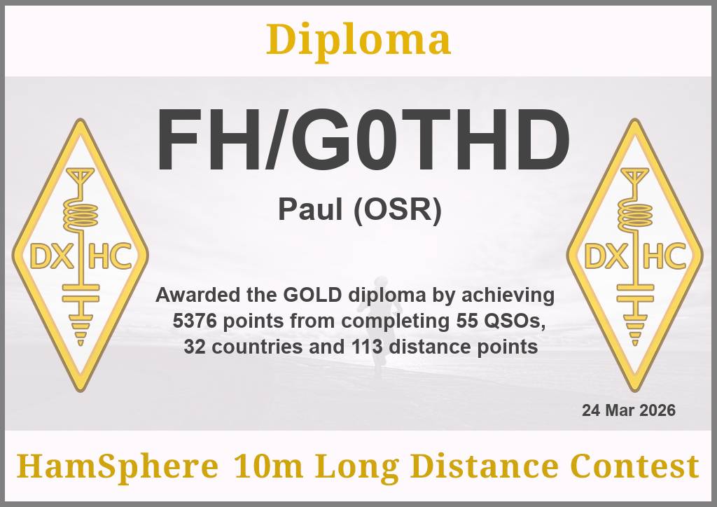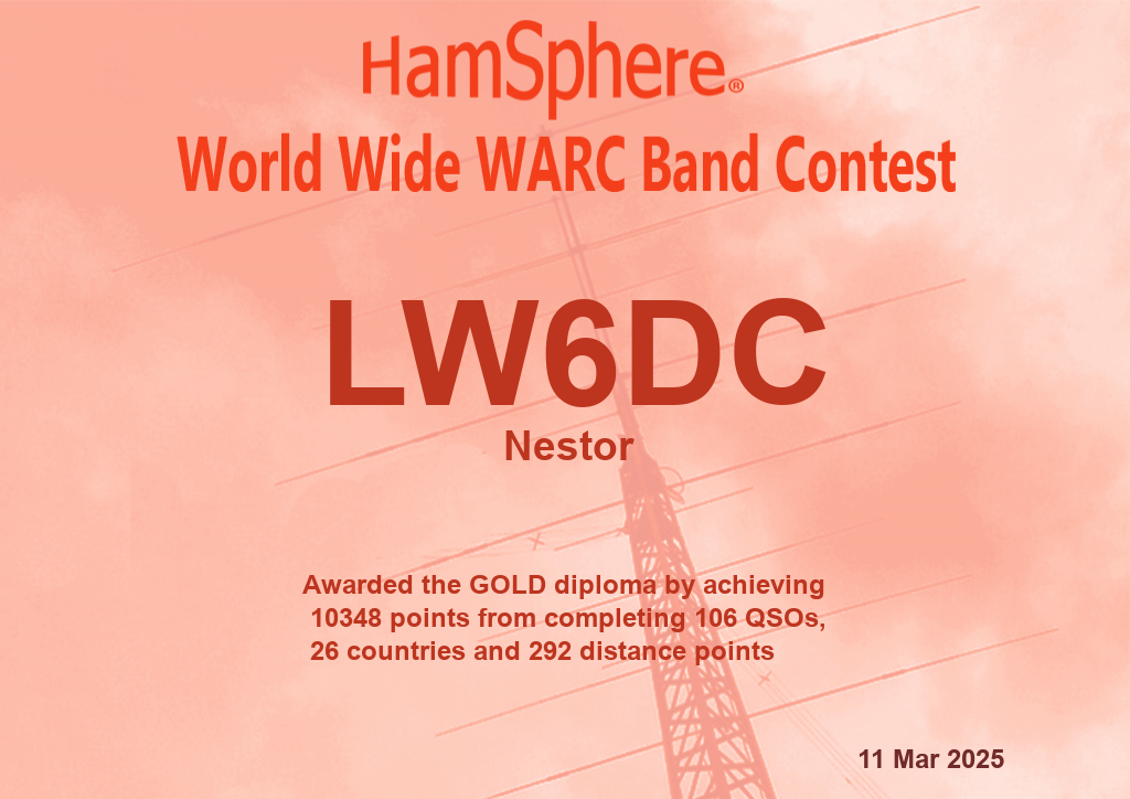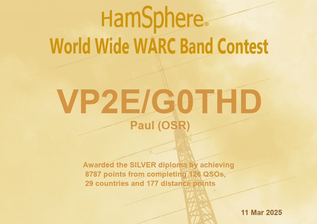 | HamSphere DXHC 80m and 160m Championship 2025 | 2025-12-06 06:00:00 | 2025-12-07 06:00:00 | 2025-12-08 12:00:00 | VIEW | ||||