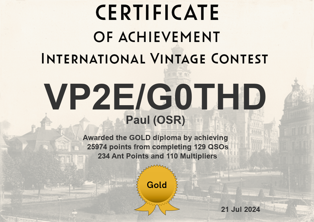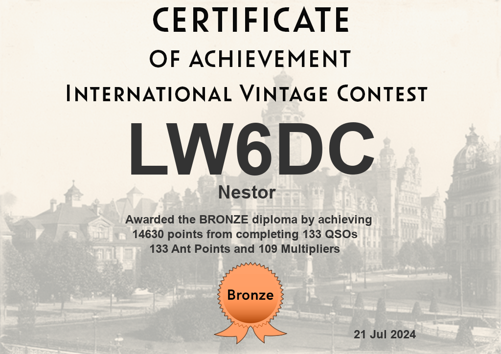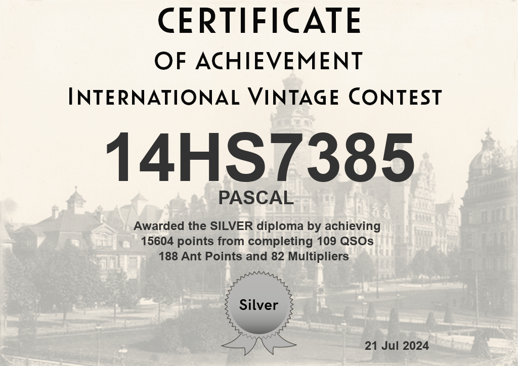 | HamSphere International Vintage Contest HF 2024 | 2024-07-20 00:00:00 | 2024-07-21 00:00:00 | 2024-07-21 00:00:00 | VIEW | ||||