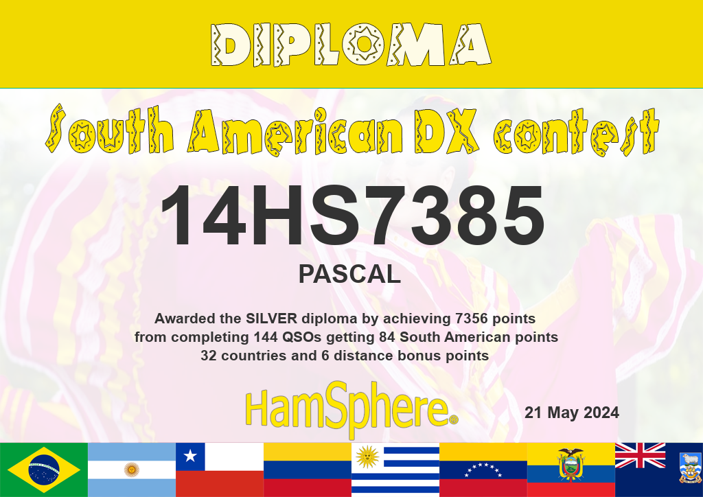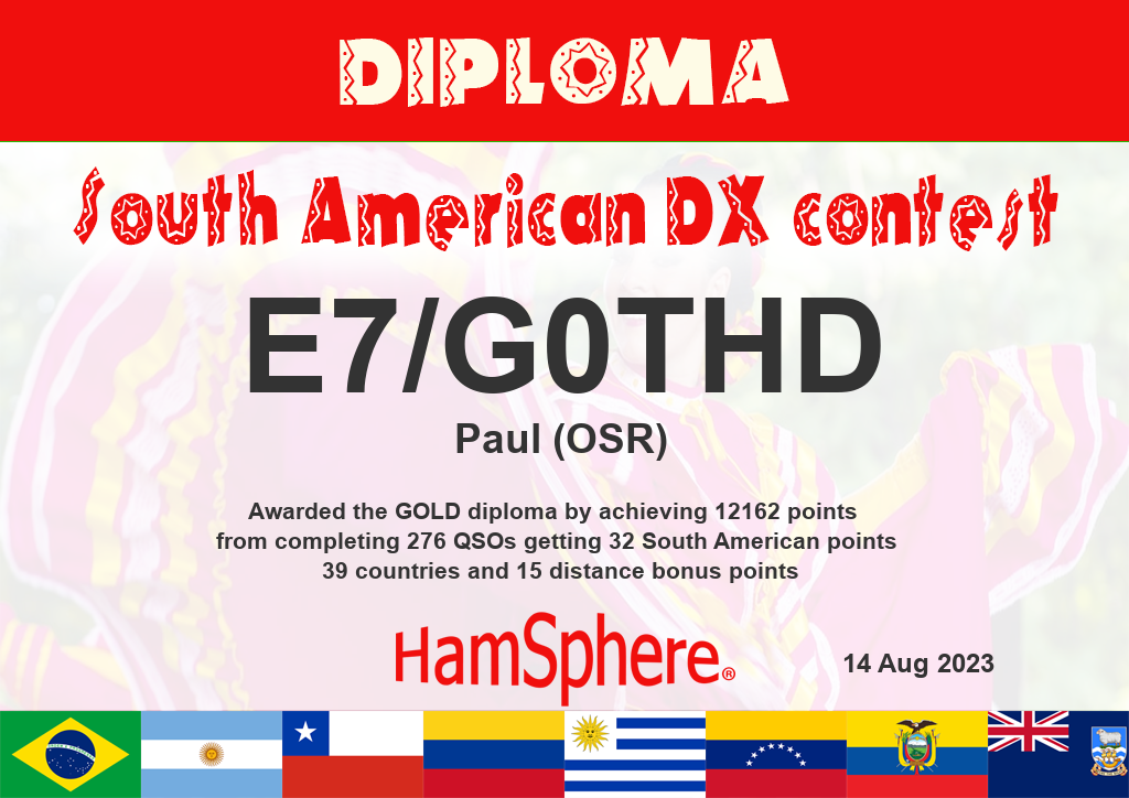 | HamSphere South American DX contest 2023 | 2023-08-12 15:00:00 | 2023-08-13 15:00:00 | 2023-08-14 15:00:00 | VIEW | ||||