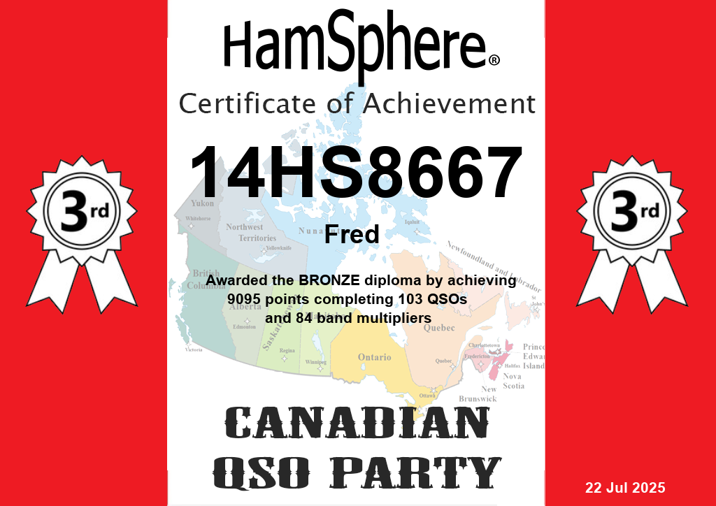 | HamSphere Canadian QSO Party 2025 | 2025-07-19 08:00:00 | 2025-07-20 08:00:00 | 2025-07-22 08:00:00 | VIEW | ||||