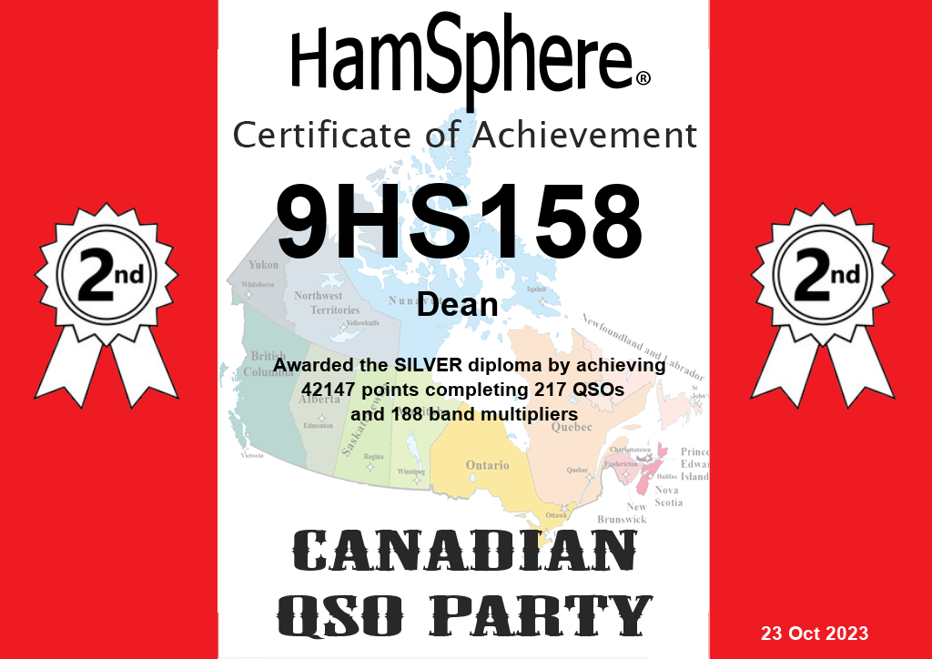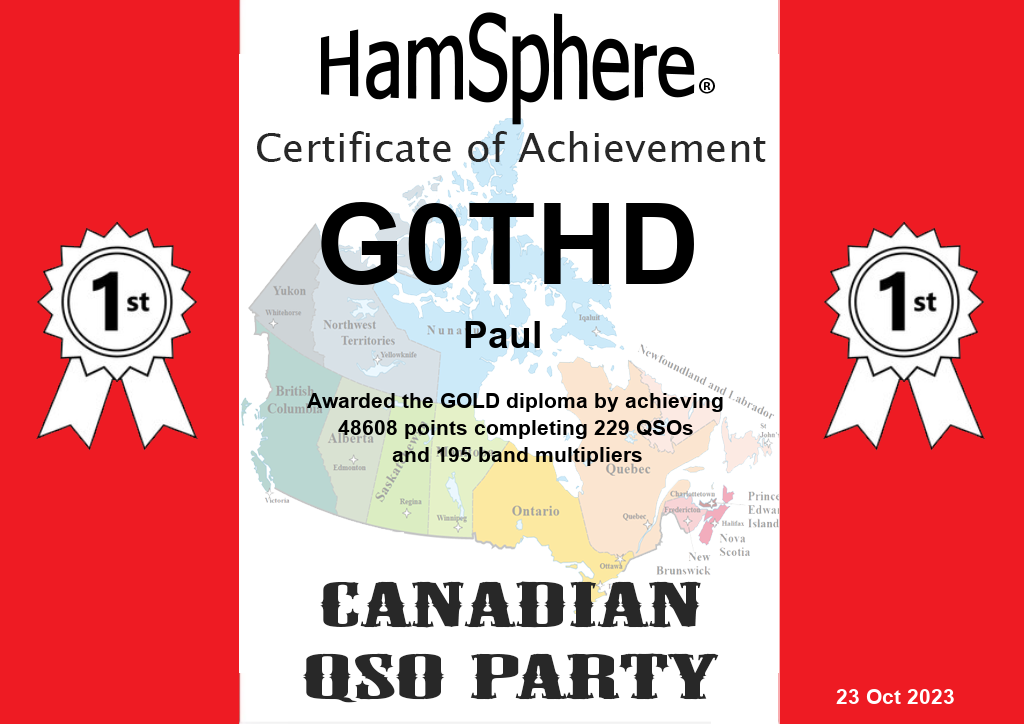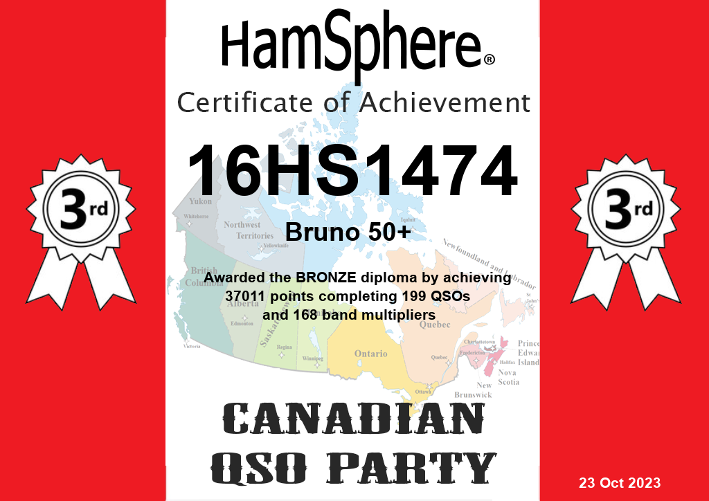 | HamSphere Canadian QSO Party 2023 | 2023-10-21 12:00:00 | 2023-10-22 12:00:00 | 2023-10-23 12:00:00 | VIEW | ||||