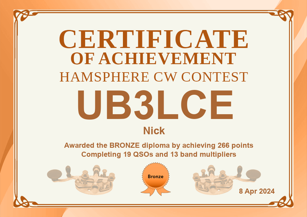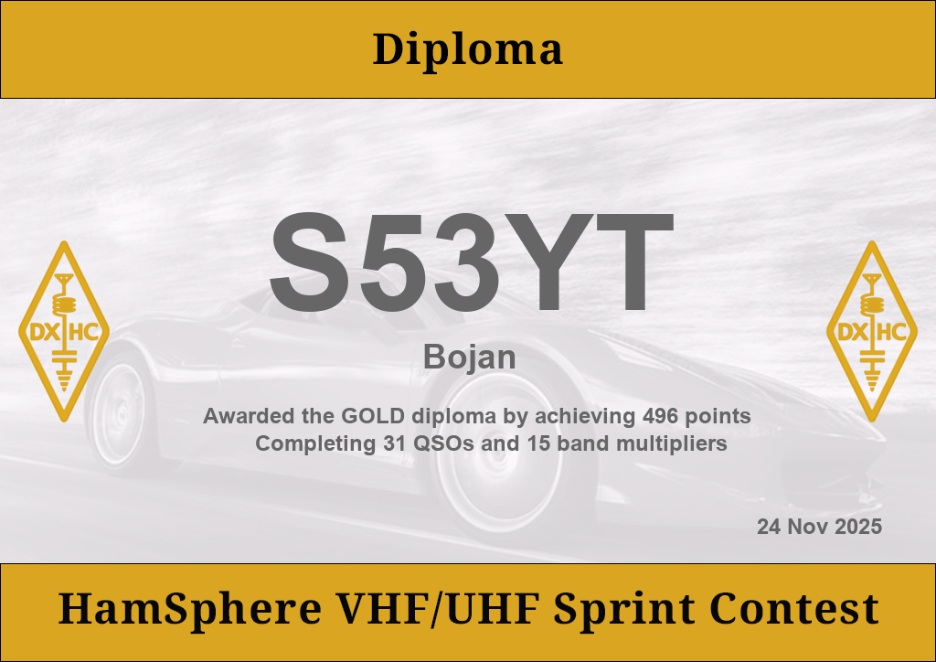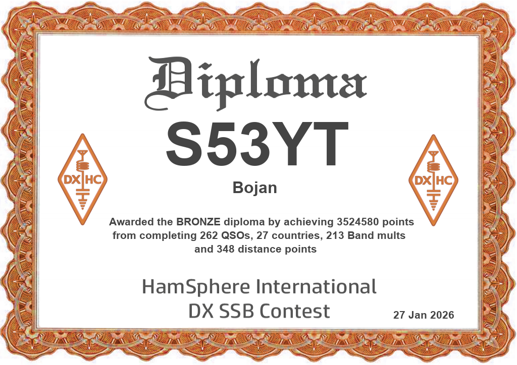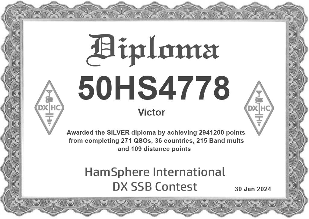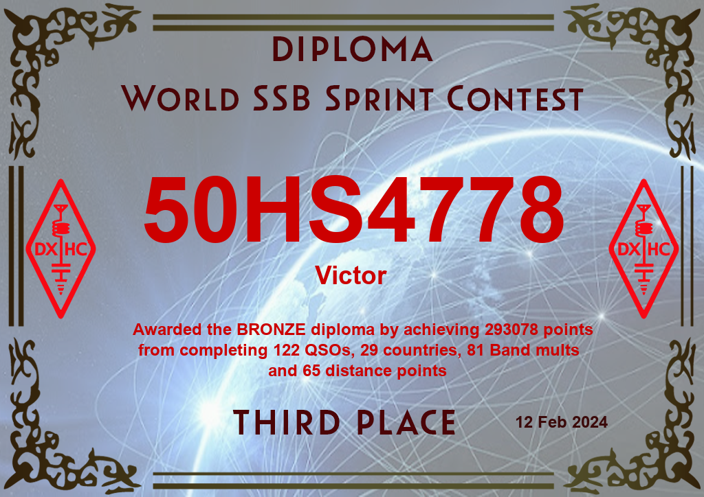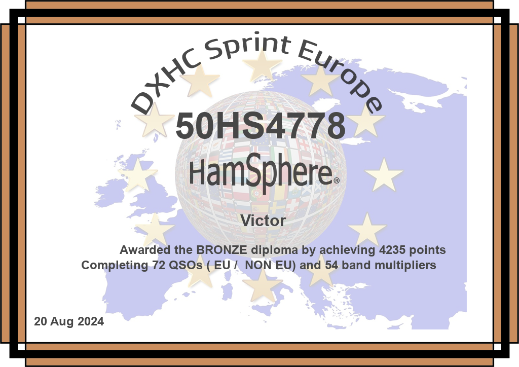 | Welcome to the first contest for HamSphere 5.0. For the first time we will award the top three winners with Gold, Silver and Bronze diplomas to confirm the achievements. |