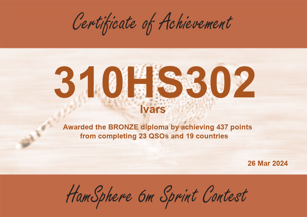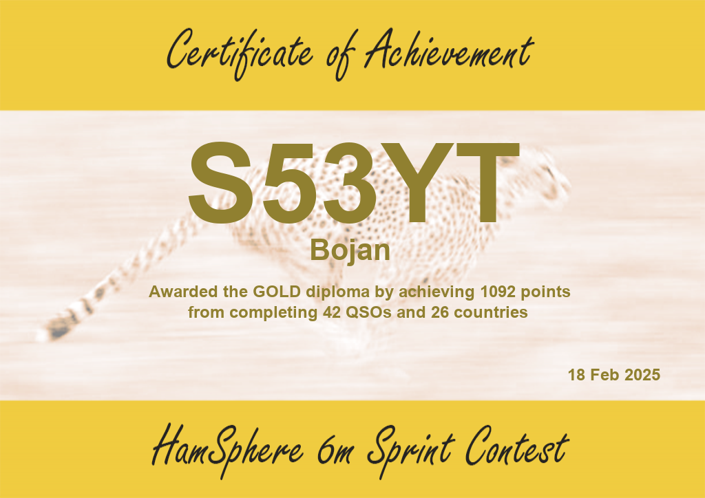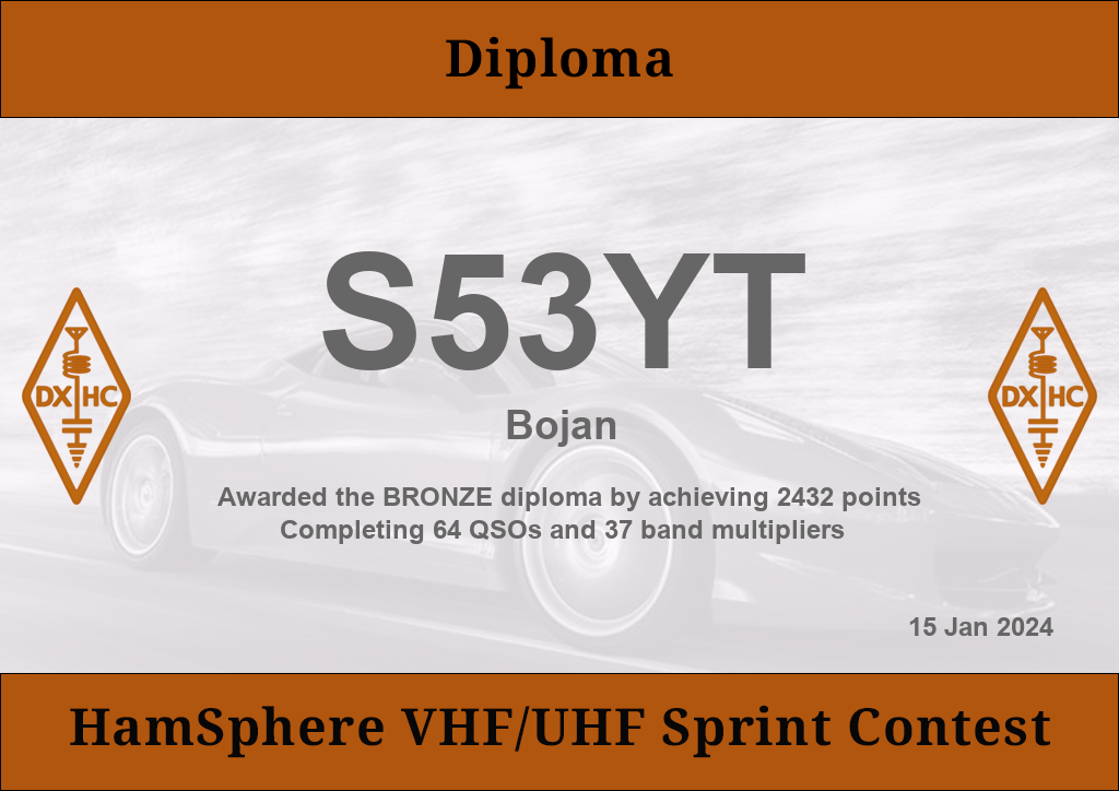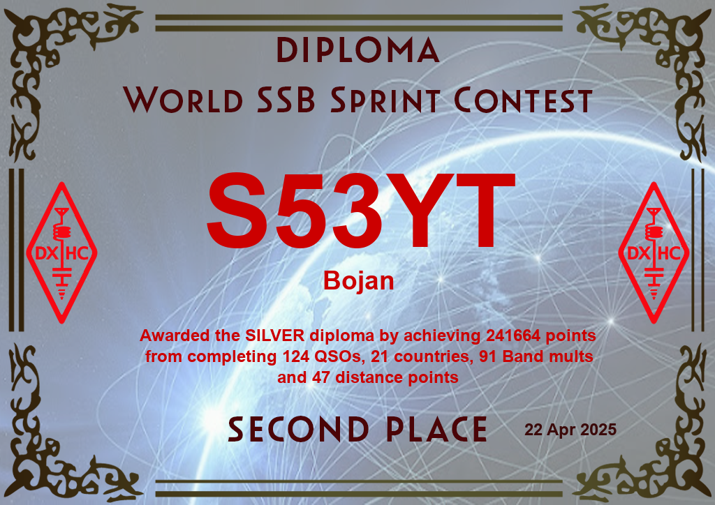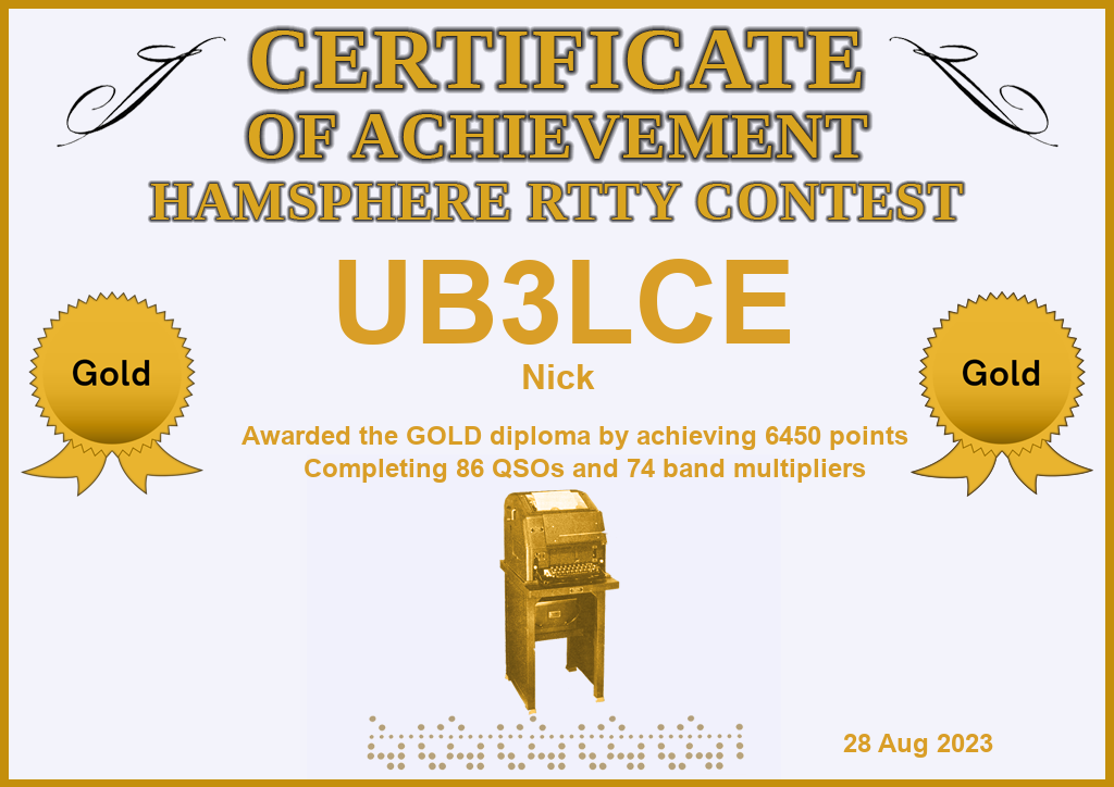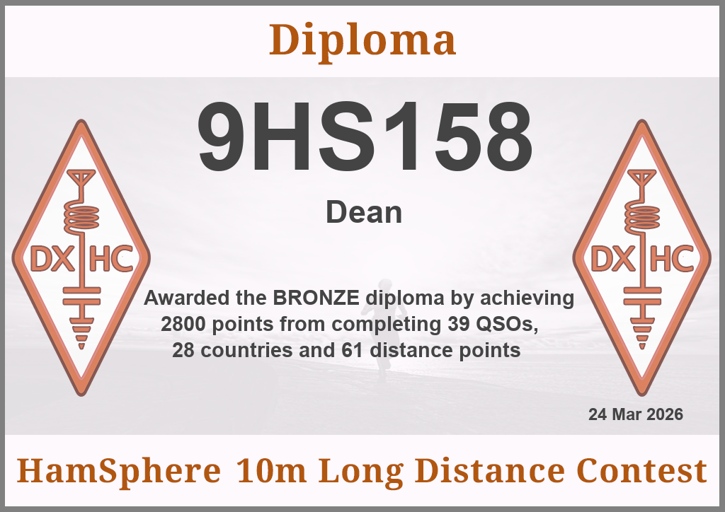 | Welcome to the first contest for HamSphere 5.0. For the first time we will award the top three winners with Gold, Silver and Bronze diplomas to confirm the achievements. |