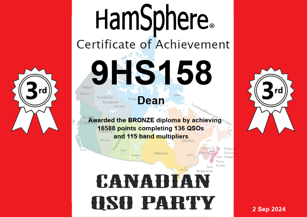 | HamSphere Canadian QSO Party 2024 | 2024-08-31 08:00:00 | 2024-09-01 08:00:00 | 2024-09-02 00:00:00 | VIEW | ||||