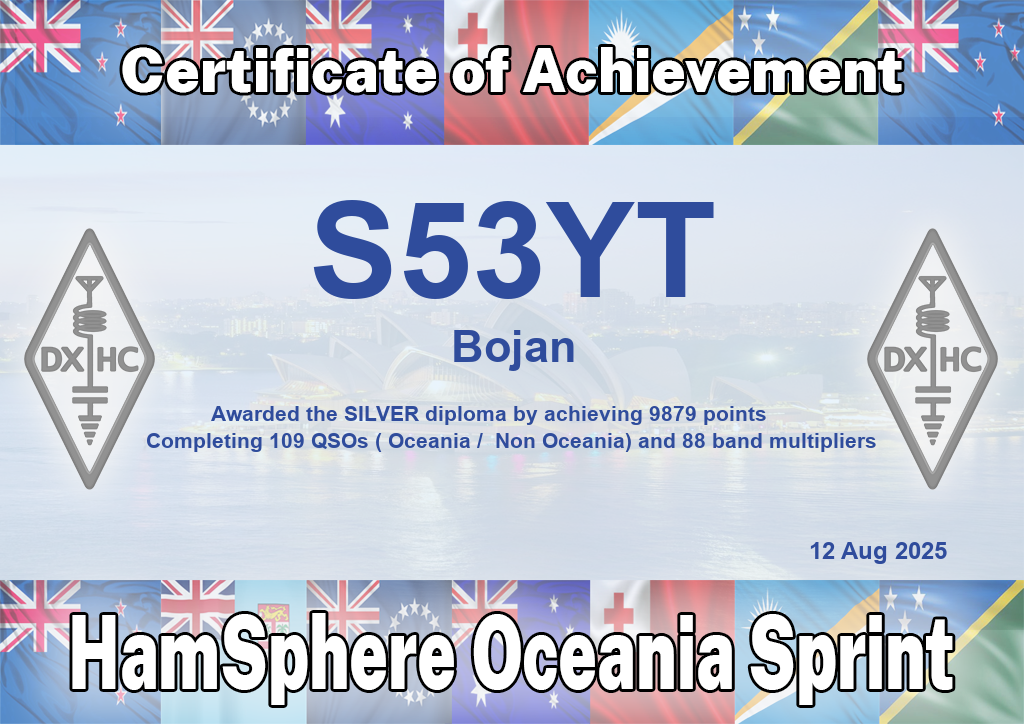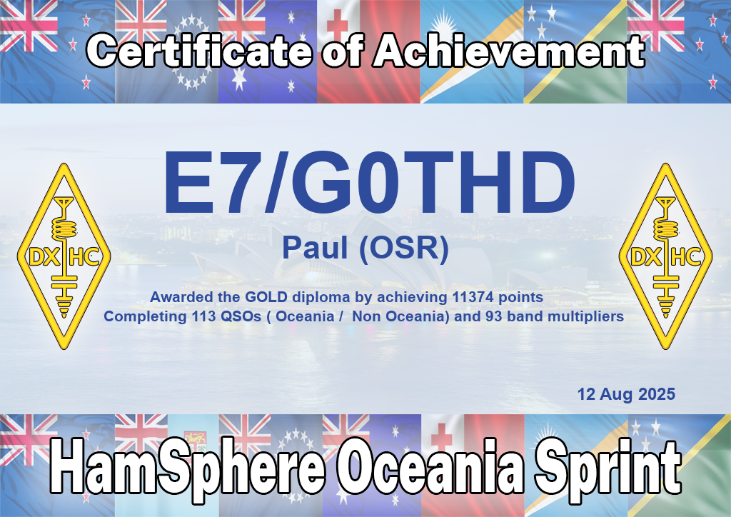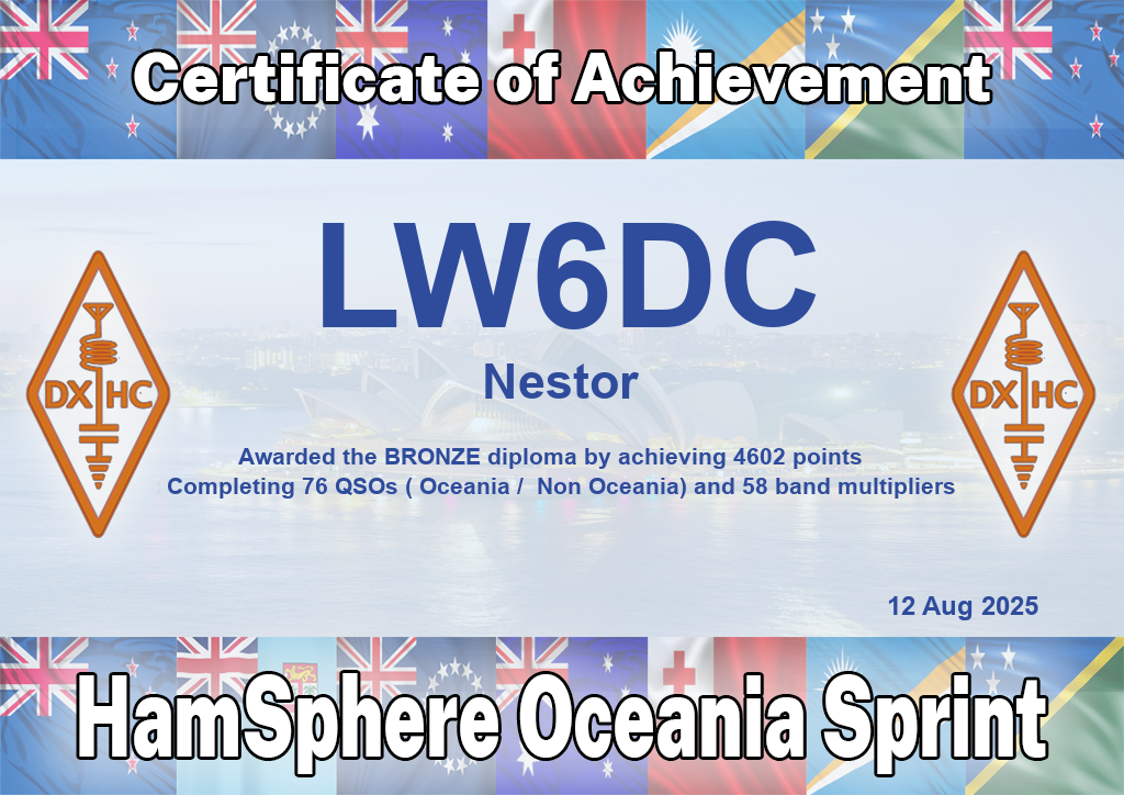 | HamSphere Oceania DX Sprint 2025 | 2025-08-09 06:00:00 | 2025-08-09 12:00:00 | 2025-08-12 06:00:00 | VIEW | ||||
