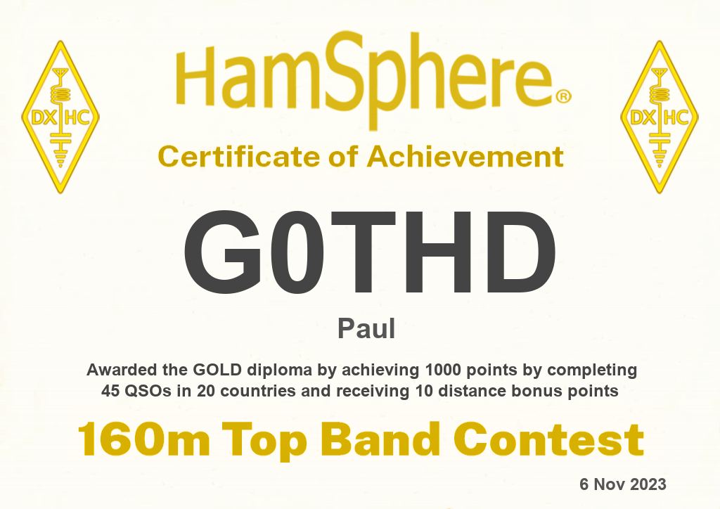 | HamSphere Top band contest 2023 | 2023-11-04 00:00:00 | 2023-11-05 00:00:00 | 2023-11-06 00:00:00 | VIEW | ||||