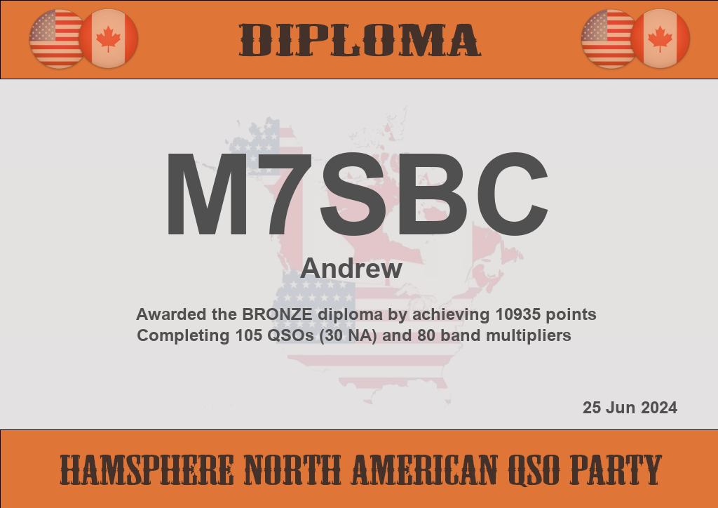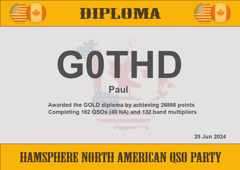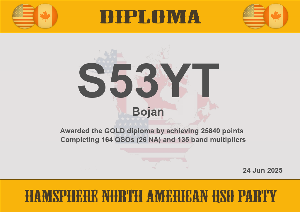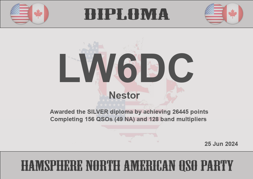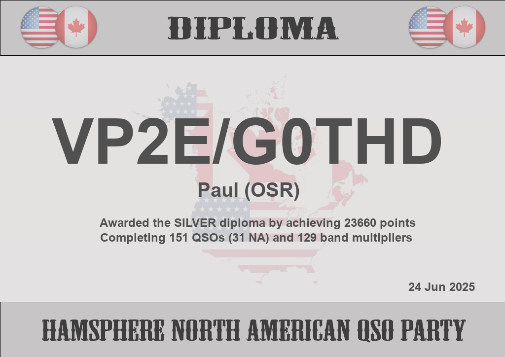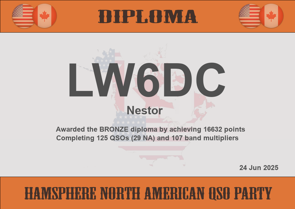 | HamSphere North American QSO Party 2025 | 2025-06-21 15:00:00 | 2025-06-22 15:00:00 | 2025-06-24 15:00:00 | VIEW | ||||