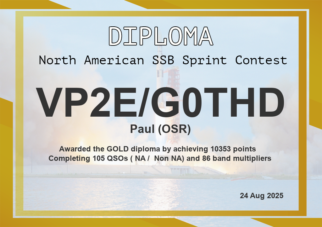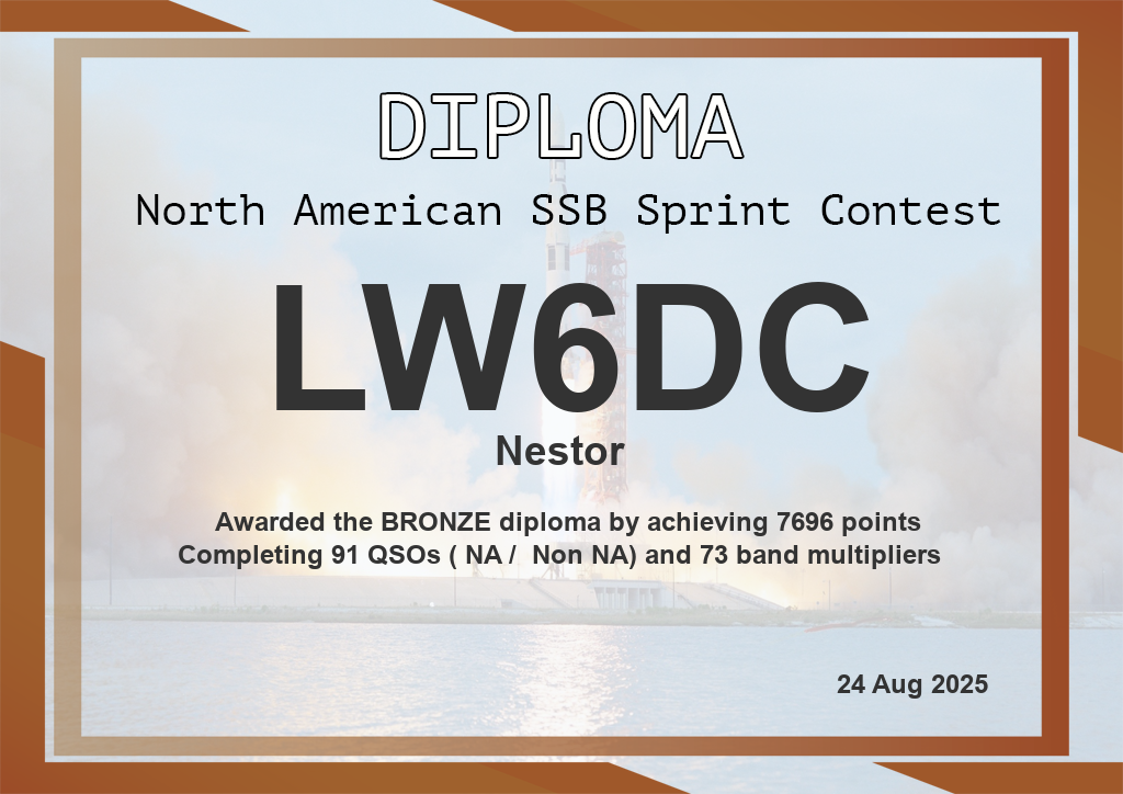| HamSphere North American SSB Sprint Contest 2025 | 2025-08-23 16:00:00 | 2025-08-23 22:00:00 | 2025-08-24 00:00:00 | VIEW | ||||