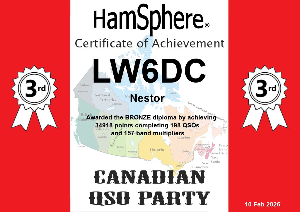 | HamSphere Canadian QSO Party 2026 | 2026-02-07 12:00:00 | 2026-02-08 12:00:00 | 2026-02-10 00:00:00 | VIEW | ||||