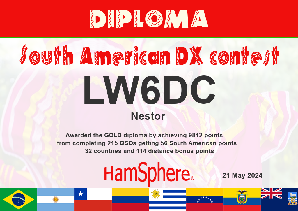 | In this 24 hour contest you will work as many operators you can around the world. Working South American stations or long distance stations give extra points. |
