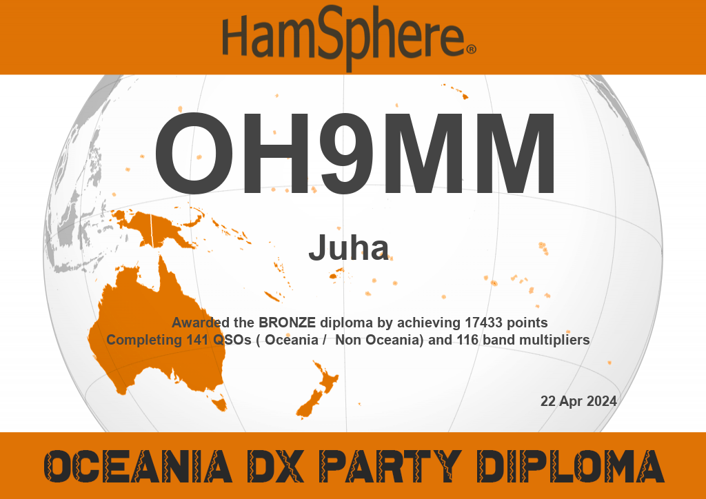 | Work as many stations you can in the world during 24 hours. QSOs with operators in Oceania give bonus points. |