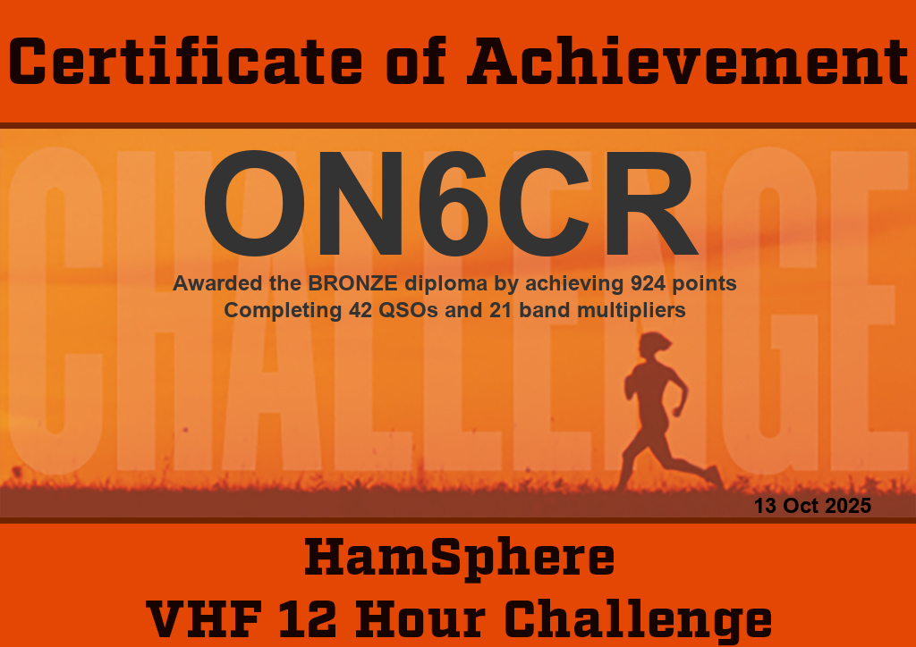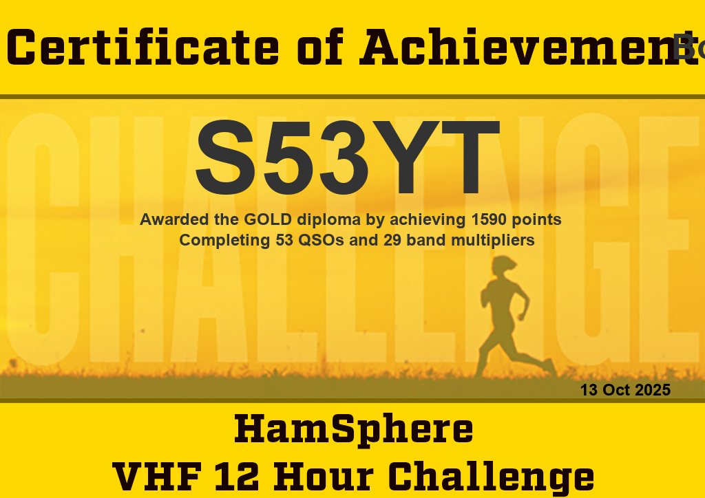 | HamSphere VHF 12 Hour Challenge 2025 | 2025-10-11 11:00:00 | 2025-10-11 23:00:00 | 2025-10-13 23:00:00 | VIEW | ||||