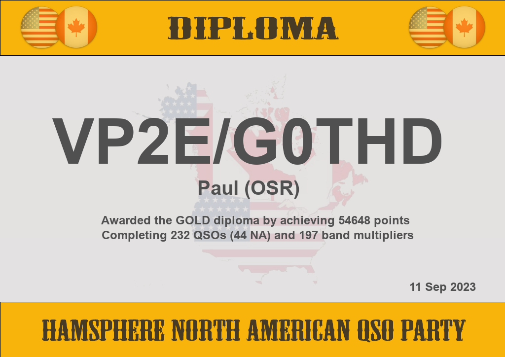 | HamSphere North American QSO Party 2023 | 2023-09-09 15:00:00 | 2023-09-10 15:00:00 | 2023-09-11 15:00:00 | VIEW | ||||
